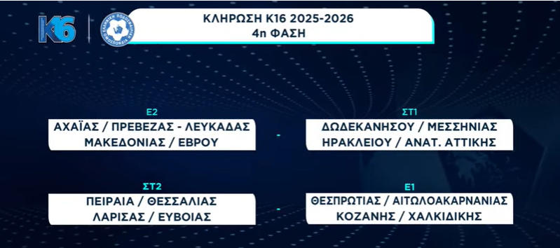 Πραγματοποιήθηκε σήμερα η κλήρωση του πανελλήνιου πρωταθλήματος Κ-16 για τις 16 ομάδες που περάσαν από του Ομίλους.