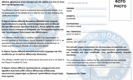 ” Όπως είχατε ενημερωθεί με αλληλογραφία τον Ιούλιο του 2023, θα πρέπει να γίνεται χρήση αποκλειστικώς του νέου εντύπου Κάρτας Υγείας Ποδοσφαιριστή και...